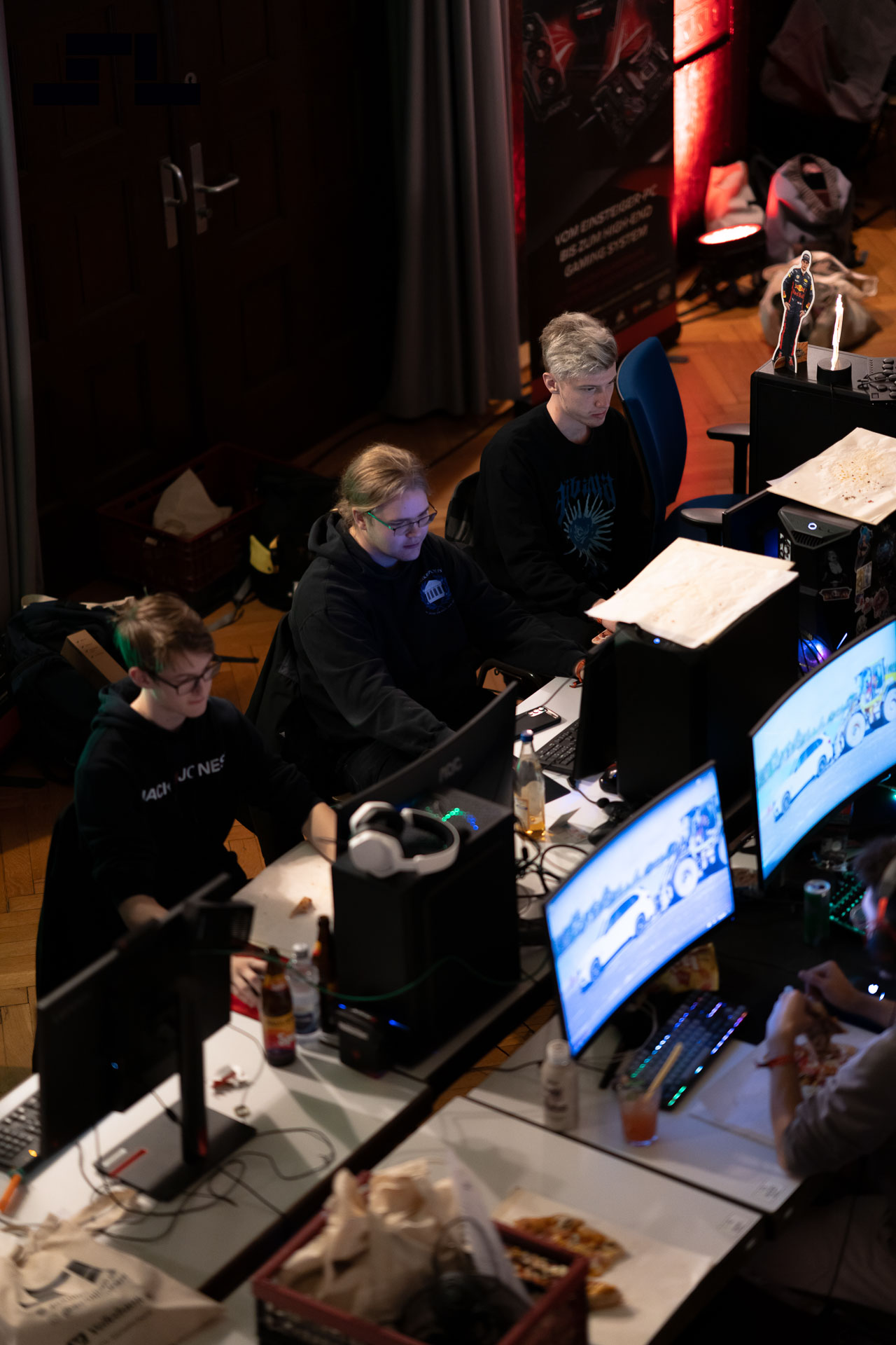 Wie gewohnt war die LAN-Area das Herzstück des Abends. Mit euch zusammen wurde an den mitgebrachten Setups bis in die frühen Morgenstunden gezockt, gefachsimpelt und gelacht. Der Konsolenbereich auf der Bühne lud mit gemütlicher Couch-Atmosphäre zu gemeinsamen Runden ein – perfekt, um zwischendurch einfach zusammen abzuschalten und neue Matches zu starten. Egal ob kompetitiv oder entspannt: Hauptsache gemeinsam.