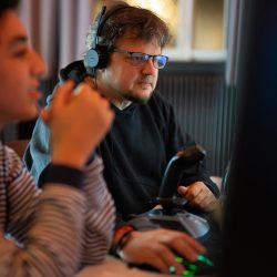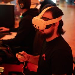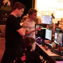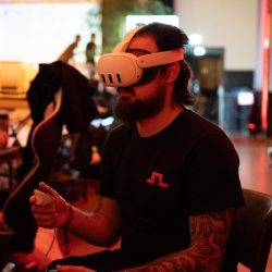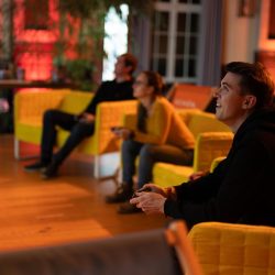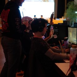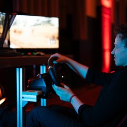 Die LAN-Area war wie gewohnt das Herzstück des Abends. An den mitgebrachten Setups wurde gezockt, bis die Leitungen glühten, während der Konsolenbereich auf der Bühne mit gemütlicher Couch-Atmosphäre lockte. Hier konnte man sich in Mario Kart, Smash Brothers und weiteren Multiplayer-Games messen. Wer etwas Neues ausprobieren wollte, tauchte im VR-Bereich in andere Welten ein oder testete die Grenzen im Rennsimulator aus.
